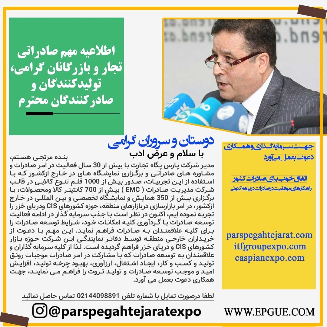 شرکت بازرگانی بین المللی پارس پگاه تجارت فعالیت اقتصادی خود را در قالب برگزاری نمایشگاه ها و همایش های متعدد بین المللی با تمرکز بر کشورهای CIS و اوراسیا بویژه روسیه، اوکراین، جمهوری آذربایجان، ترکمنستان، ارمنستان و… در سال 1368 شروع و تاکنون بیش از 300 نمایشگاه اختصاصی تخصصی و بین المللی و اعزام هیئت ها با پلتفرم های تجاری و سرمایه گذاری با حضور سازمان ها کمپانی ها و سرمایه گذاران این کشور ها برگزار نموده است.